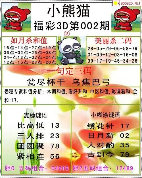 小熊猫26002期美安和值+一句定三码3d图谜