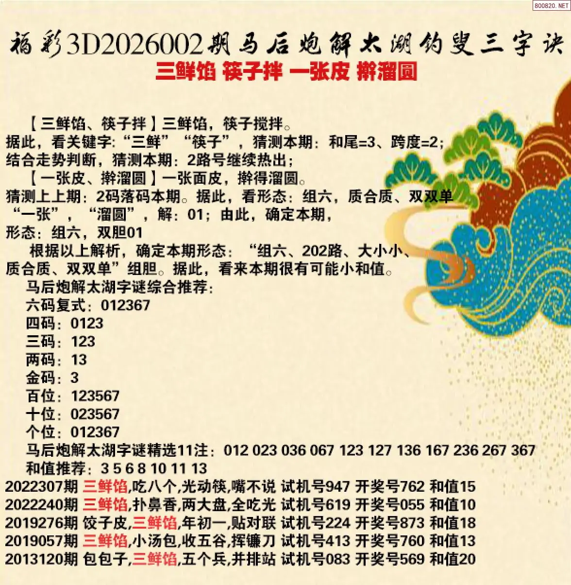3 26年002期 3D专家解今日太湖字谜