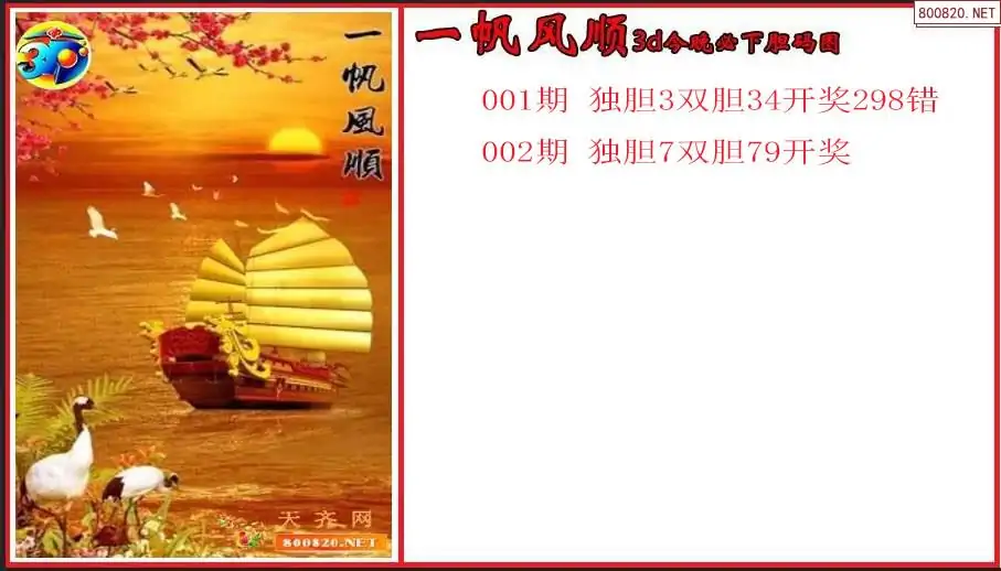 一帆风顺2026002期3d今晚必下胆码图(原创)
