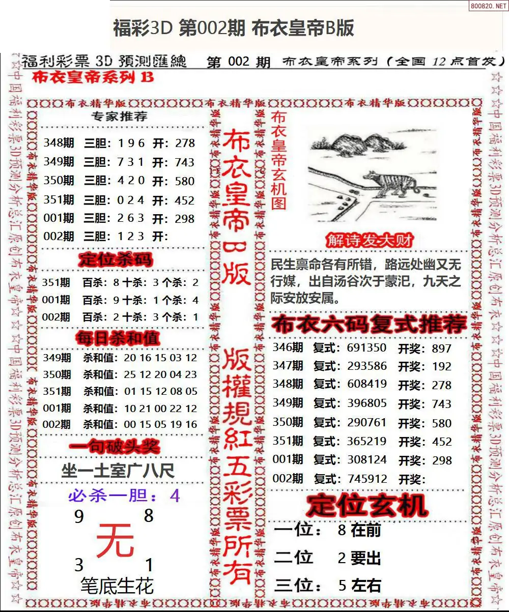 皇帝图26002期布衣皇帝+老夫子布衣3d图谜