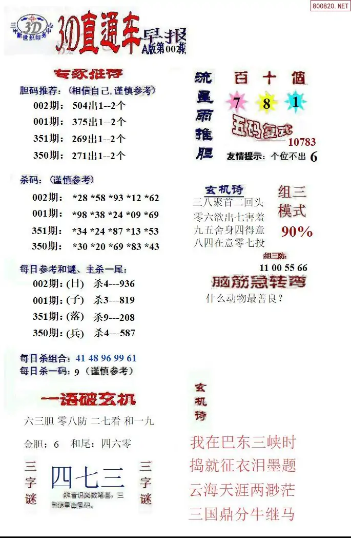 26年002期福彩3D直通车早报ABCD版