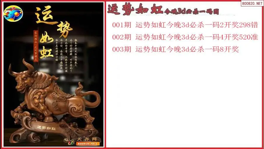 运势如虹2026003期今晚3d必杀一码图(原创)