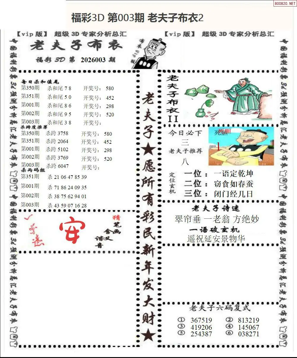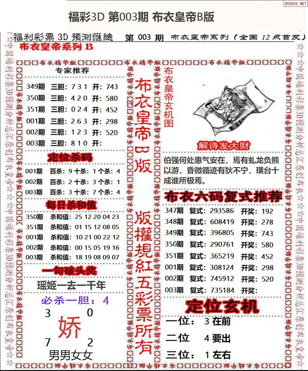 皇帝图26003期布衣皇帝+老夫子布衣3d图谜