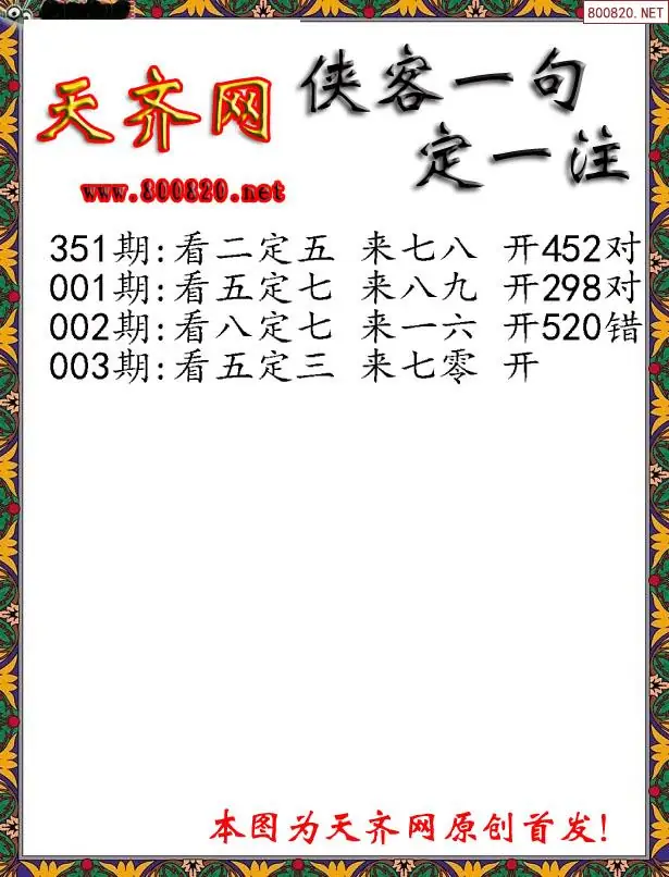 003期侠客一句3D定三码字图谜