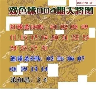 双色球26年004期天将红蓝杀号图谜