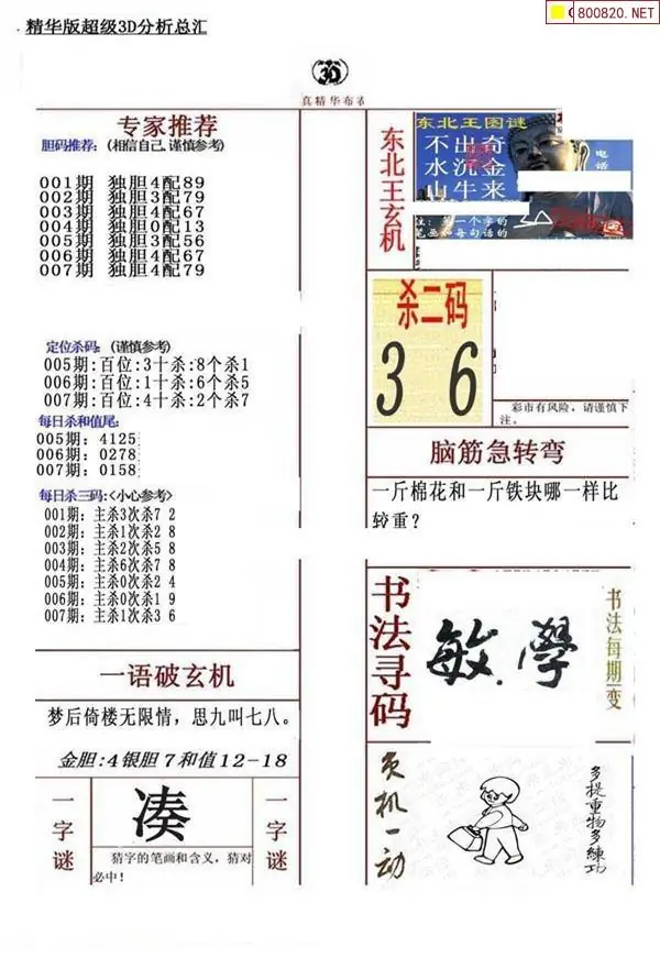 26007期彩友福彩3d图谜汇总