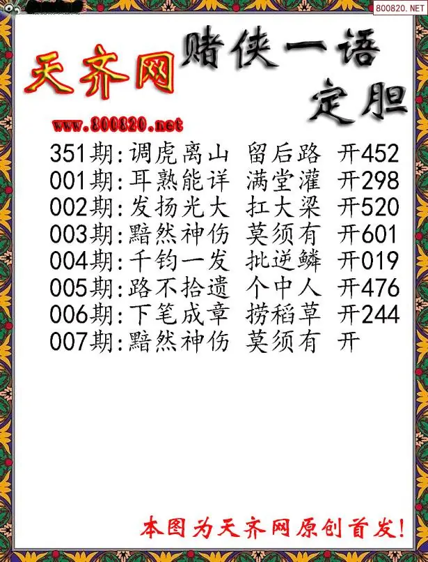007期[彩3D赌侠一句定三码字图谜
