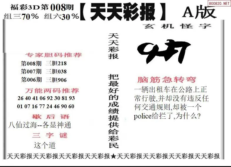 26008期福彩3D天天彩报A版 天天彩报B版
