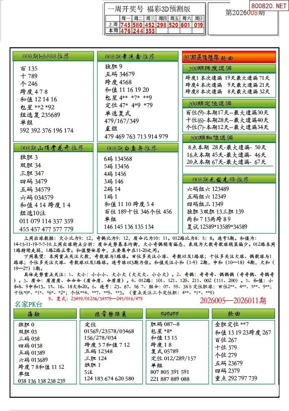 8 2026年009期3D图迷汇总(四)