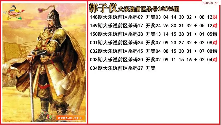 郭子仪2026004期大乐透前区杀号100%图-原创
