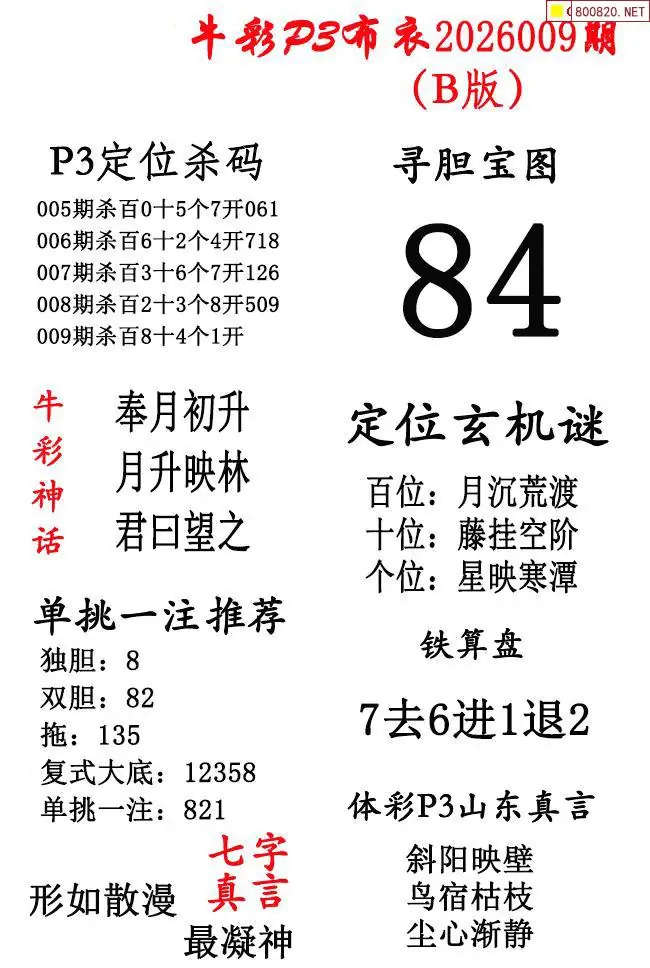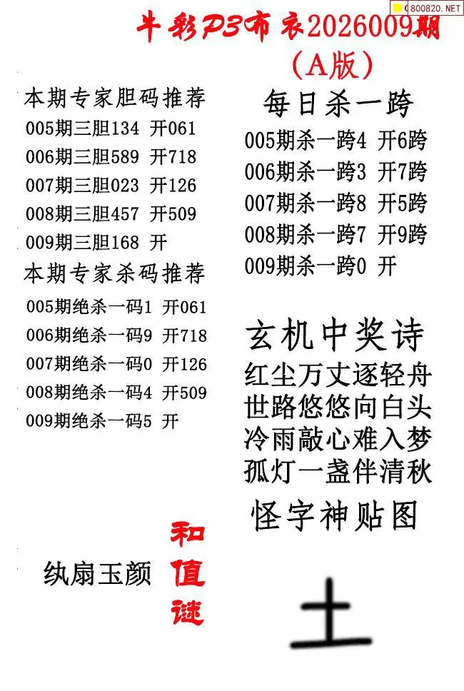 牛彩体彩P3布衣2026年009期AB版图谜(精华版)