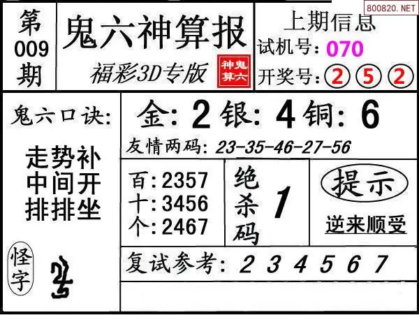 17 鬼六图26009期鬼六神算报+鬼六胆码