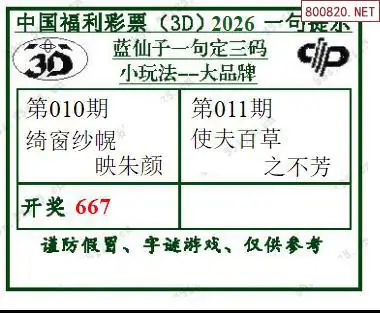 15 2026011期蓝仙子一句定三码3d图谜