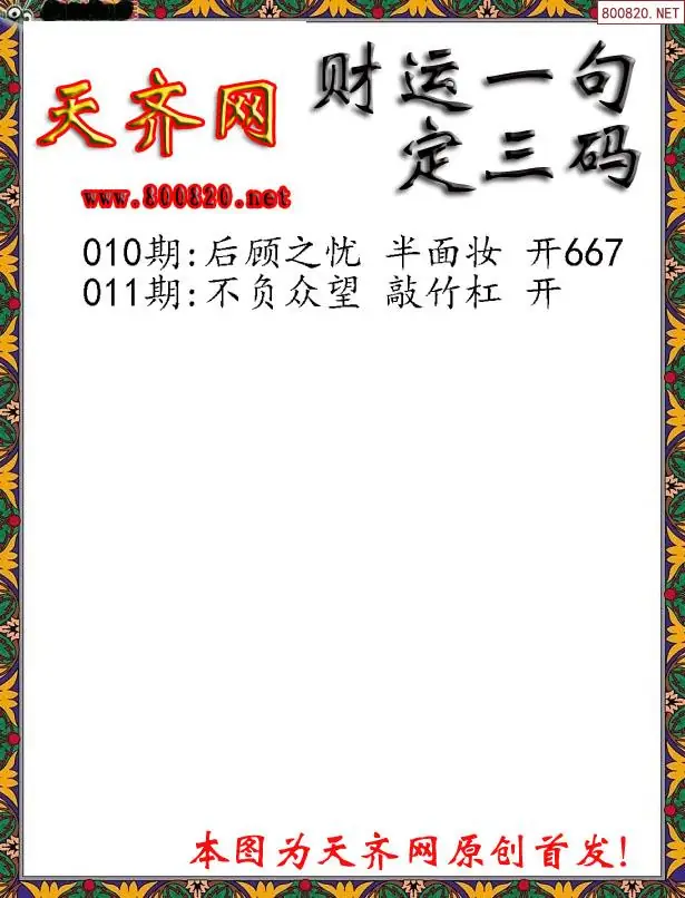 您现在所在的位置: 天齐网 >> 福彩3D >> 3D图谜 >> 正文