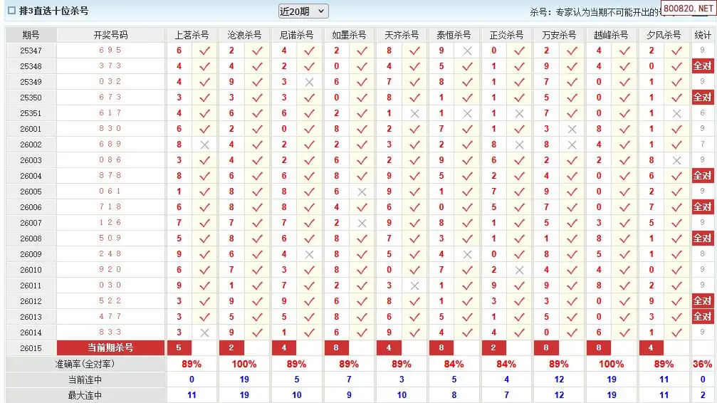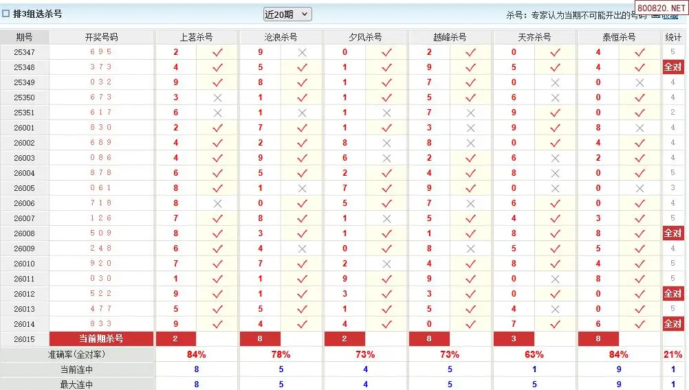 澳客彩票26年体彩P3015期十大大专家杀号