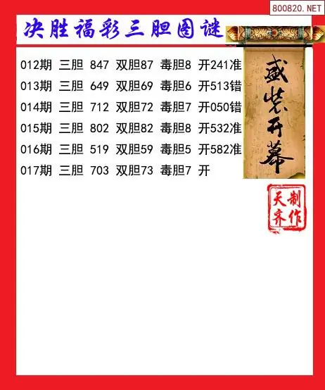 26年017期决胜福彩三胆3d图谜(天齐网原创)