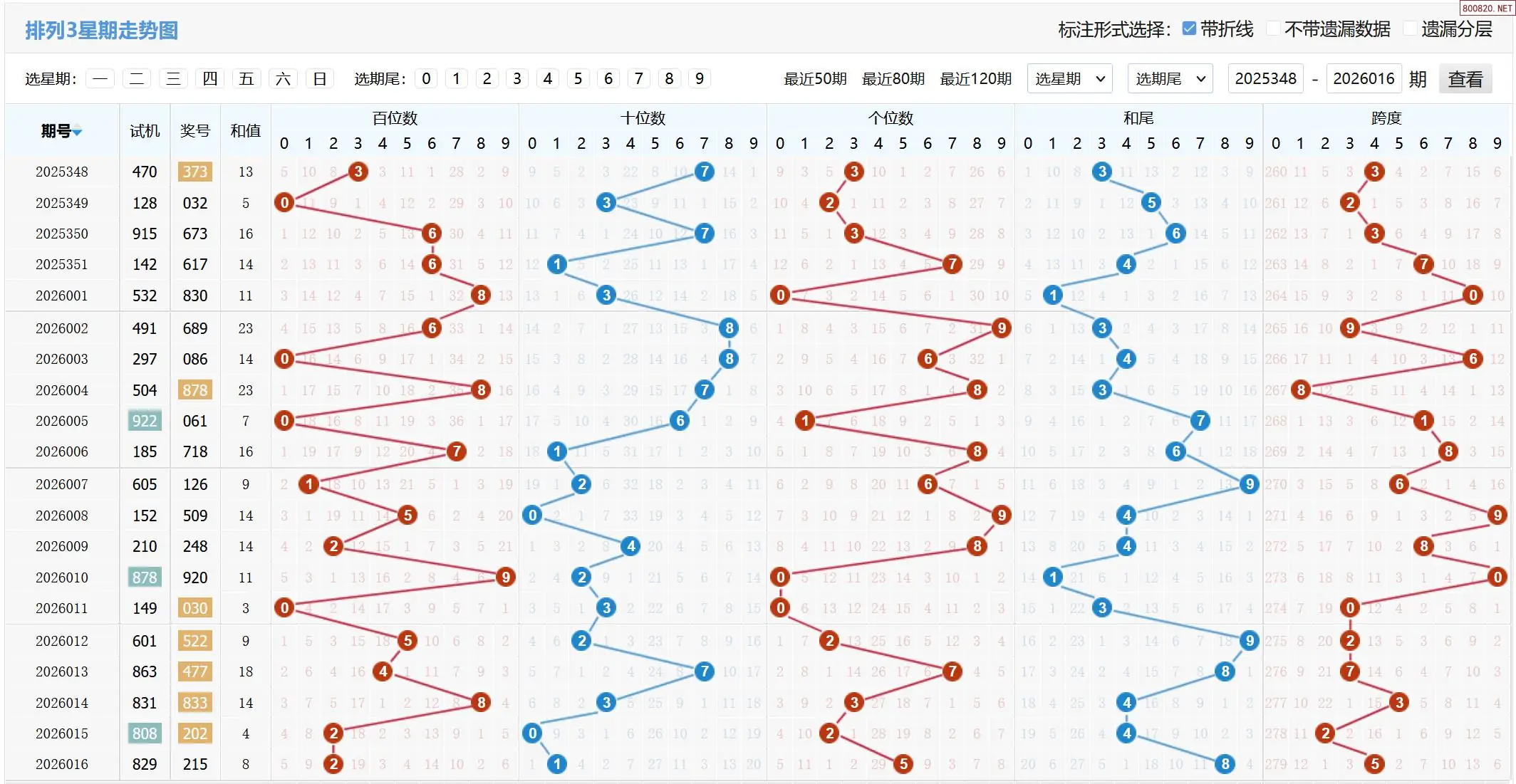 26年016期体彩P3试机号:829