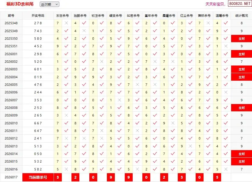 26017期彩宝贝福彩3D杀和尾