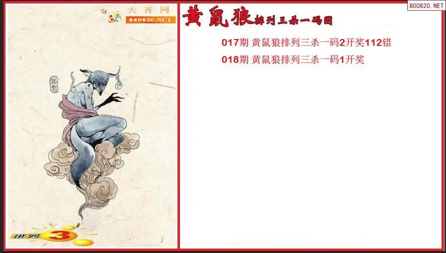 排列3第2026018期黄鼠狼杀一码图(原创)