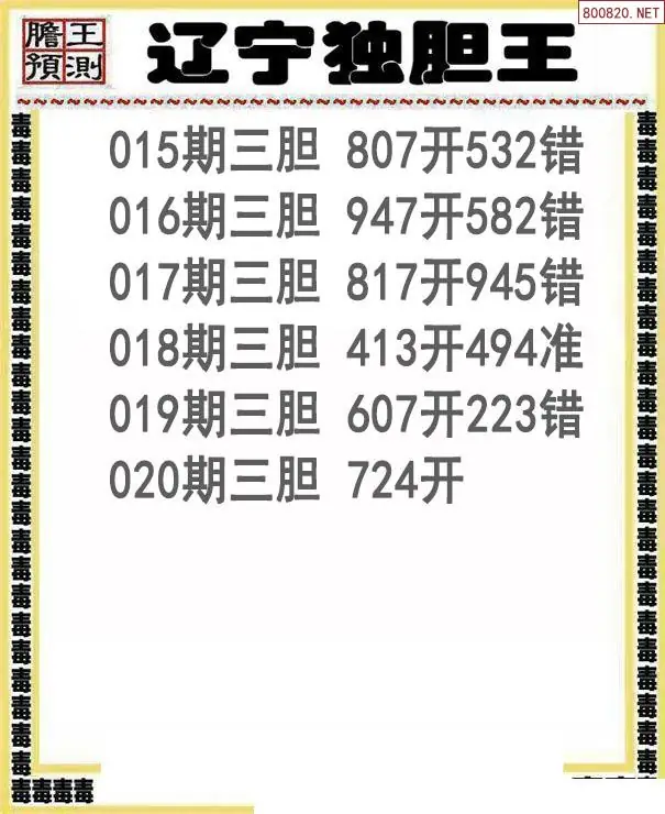 26020期辽宁独胆王三胆图谜