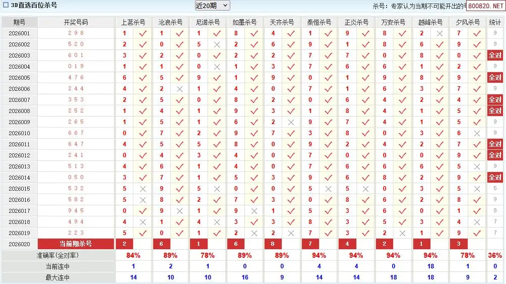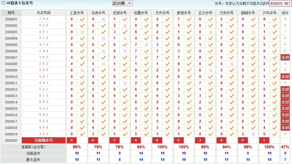 福彩3d26年020期澳客专家杀直选号码