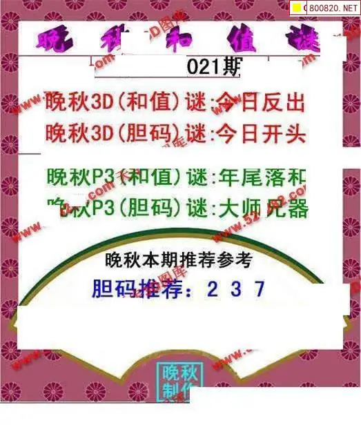 晚秋图26021期3d晚秋和值迷图谜版