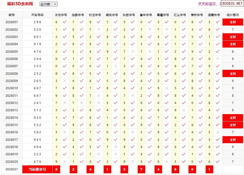 26021期彩宝贝福彩3D杀和尾