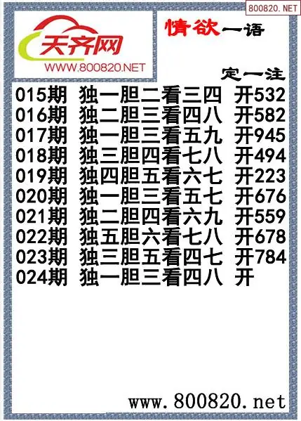 福彩3D26年024期[情欲]一语定一注