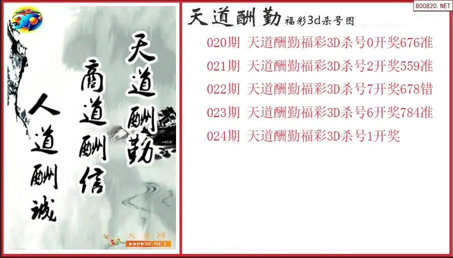 天道酬勤2026024期福彩3d杀号图(原创)