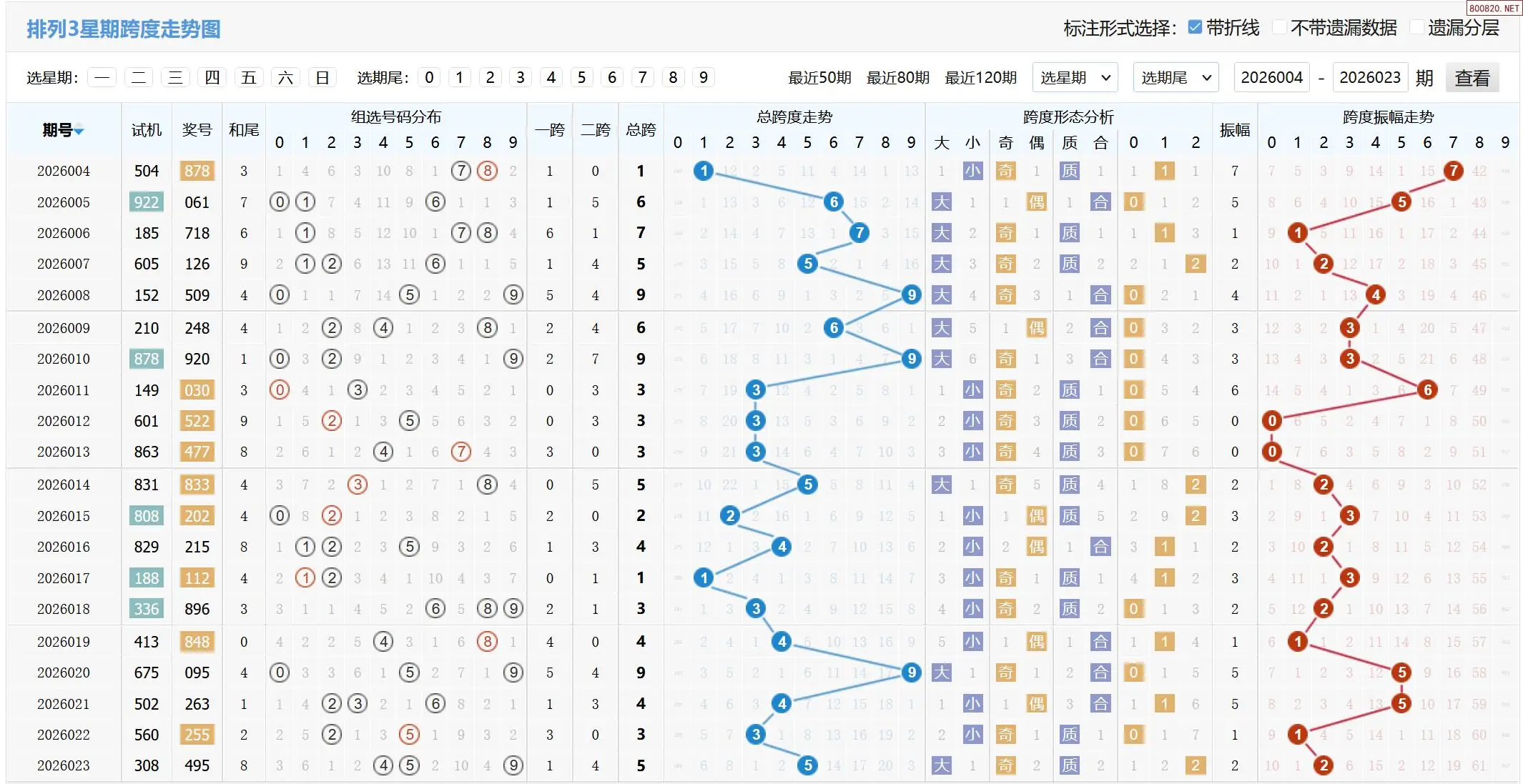 形态分析:组六,和值,18,和尾:8,跨度:5,形态为:偶奇奇,小大大,合合质。