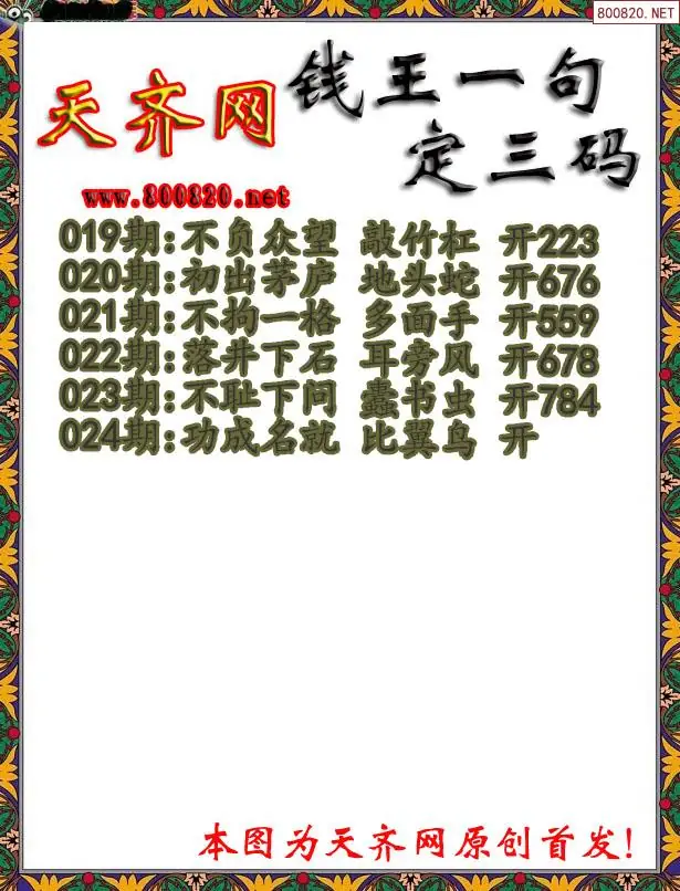 024期钱王3D一句定三码字图谜