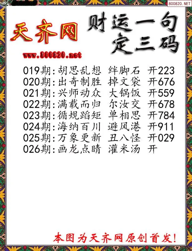 026期财运3D一句定三码字图谜
