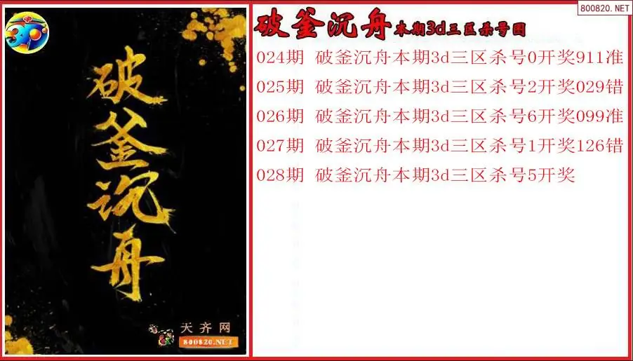 破釜沉舟2026028期本期3d三区杀号图(原创)