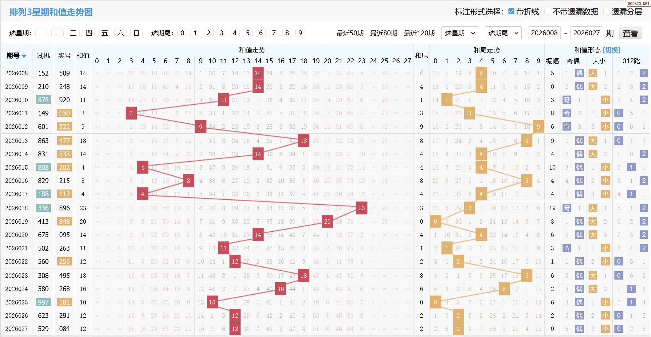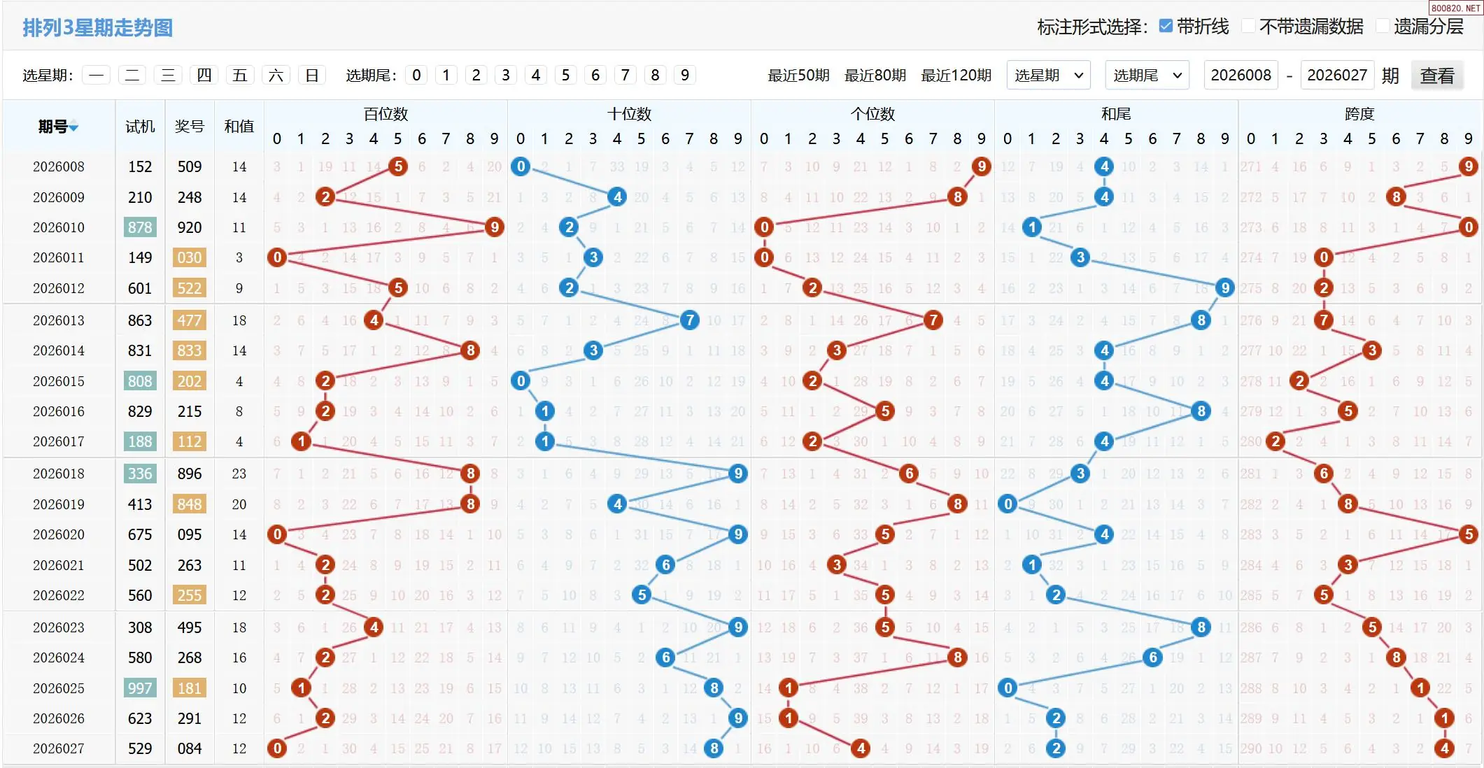 2026028期体彩P3基本走势图如下: