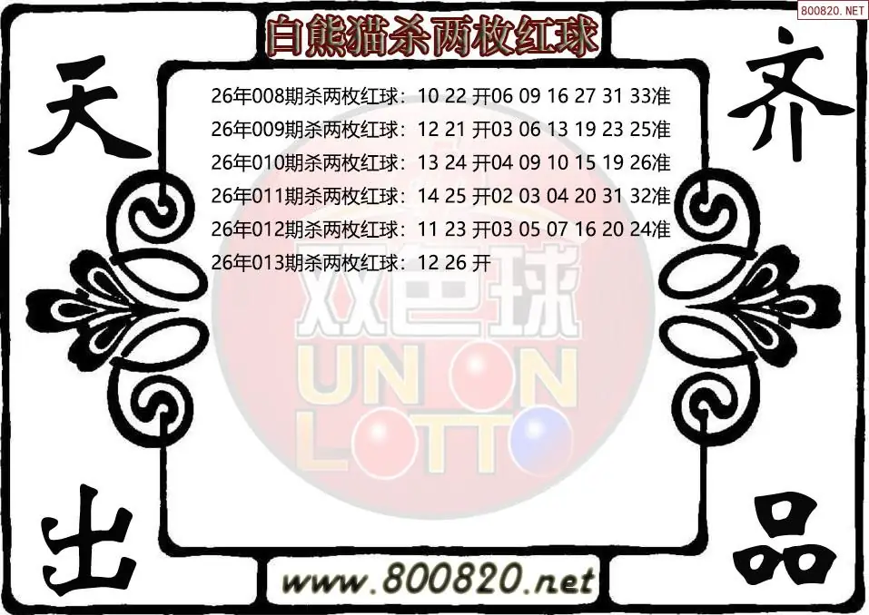 白熊猫26年013期双色球杀两枚红球图谜