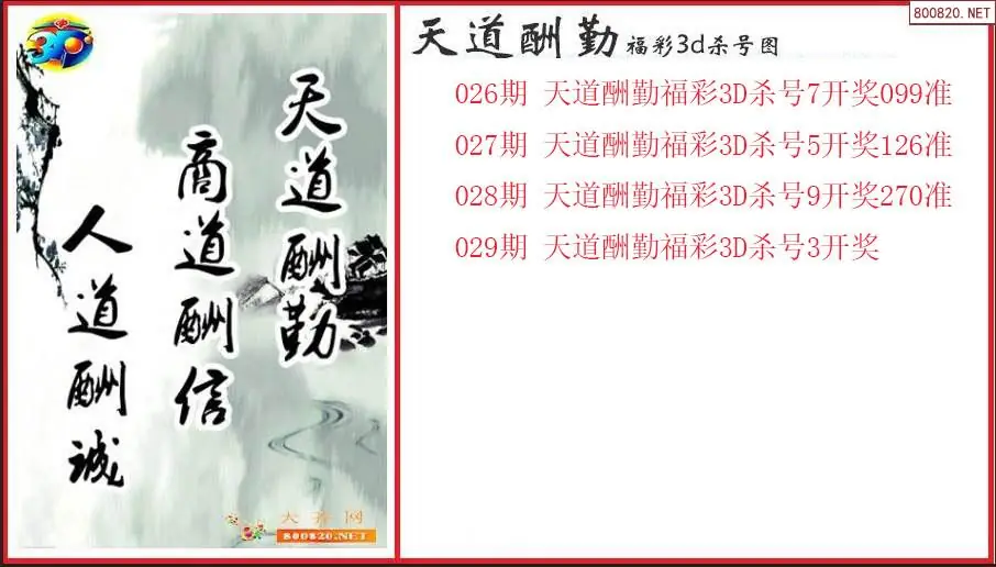 天道酬勤2026029期福彩3d杀号图(原创)