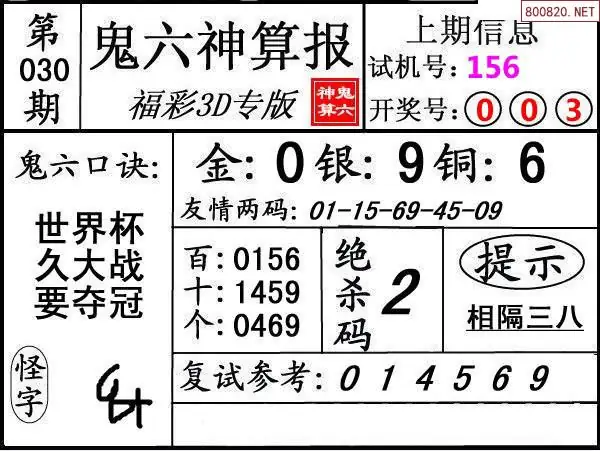 鬼六图26030期鬼六神算报+鬼六胆码图迷