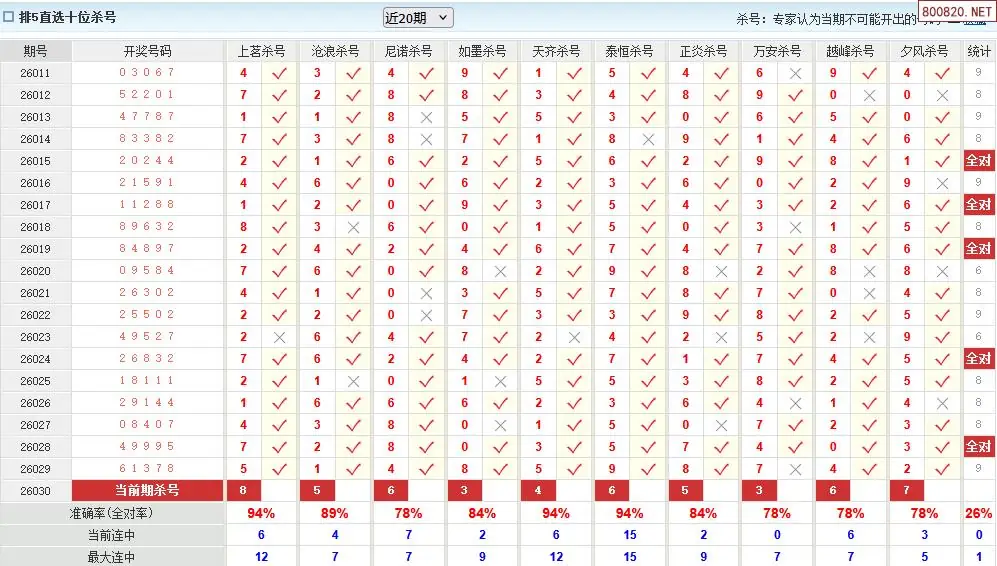 澳客彩票26年体彩P5030期十大大专家杀号
