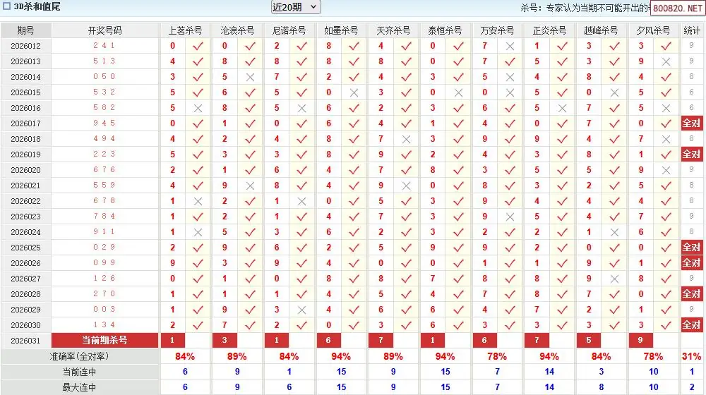 福彩3d26年031期澳客专家杀和尾