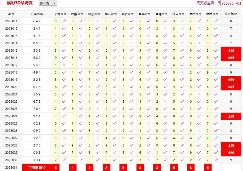 13 2026年福彩3D031期[截杀]杀两跨-原