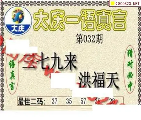 大庆图26032期大庆五码+一语真言黑胆3d图谜