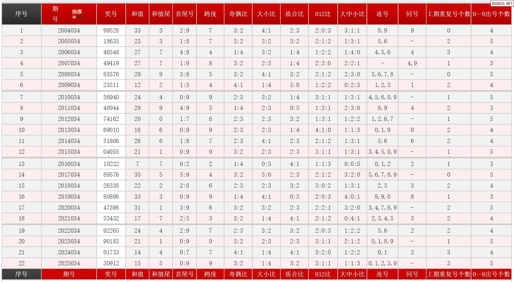 034期体彩P5历史同期对比图表+近期走势图分析