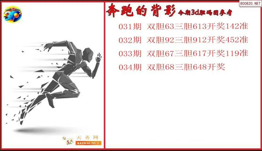 2026034期奔跑的背影今期3d胆码图参考(原创)
