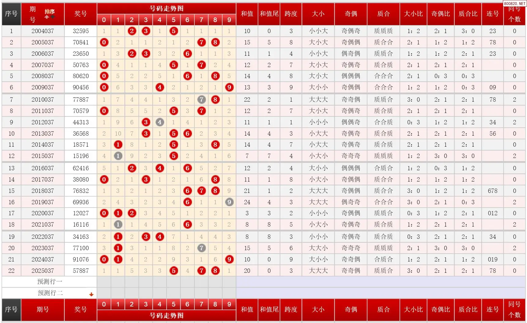 037期体彩P3历史同期对比图表+近期走势图分析