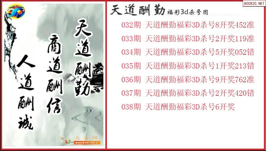 天道酬勤2026038期福彩3d杀号图(原创)