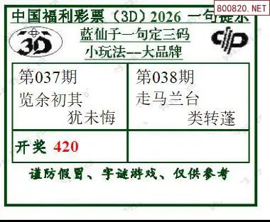 2026038期蓝仙子一句定三码3d图谜