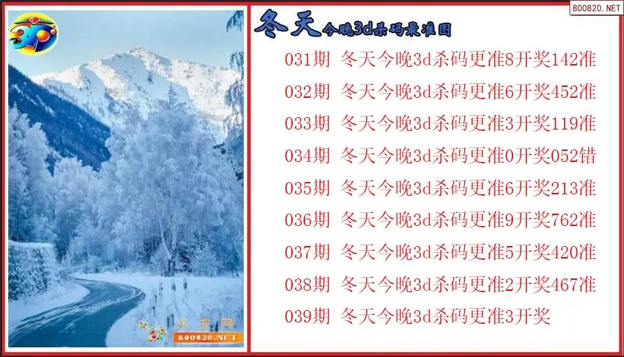 冬天2026039期今晚3d杀码精准图(原创)