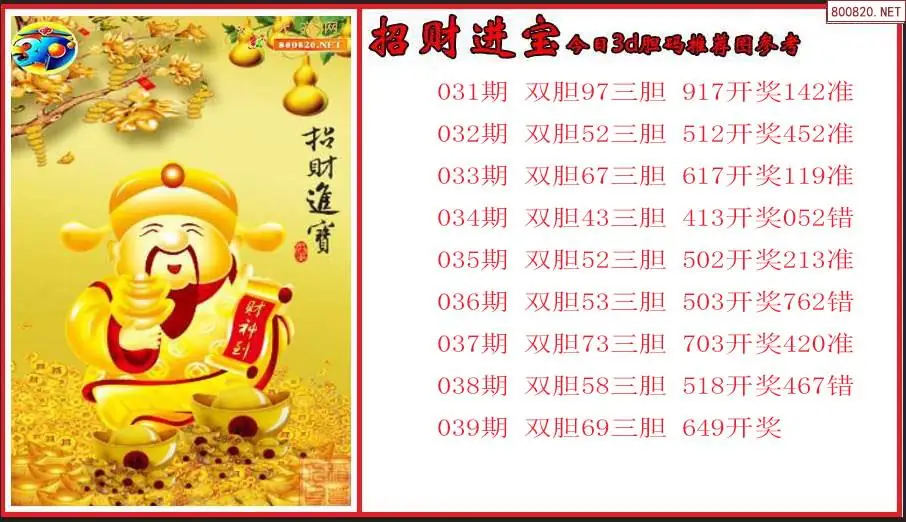 招财进宝2026039期今日3d胆码推荐图参考(原创)