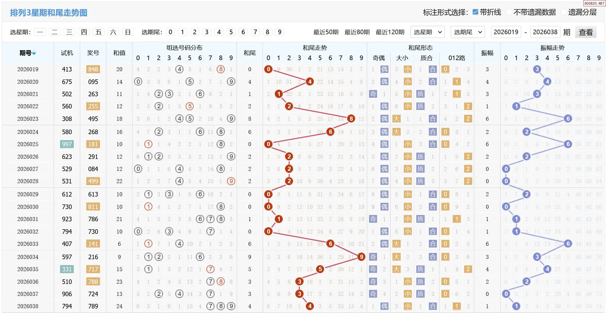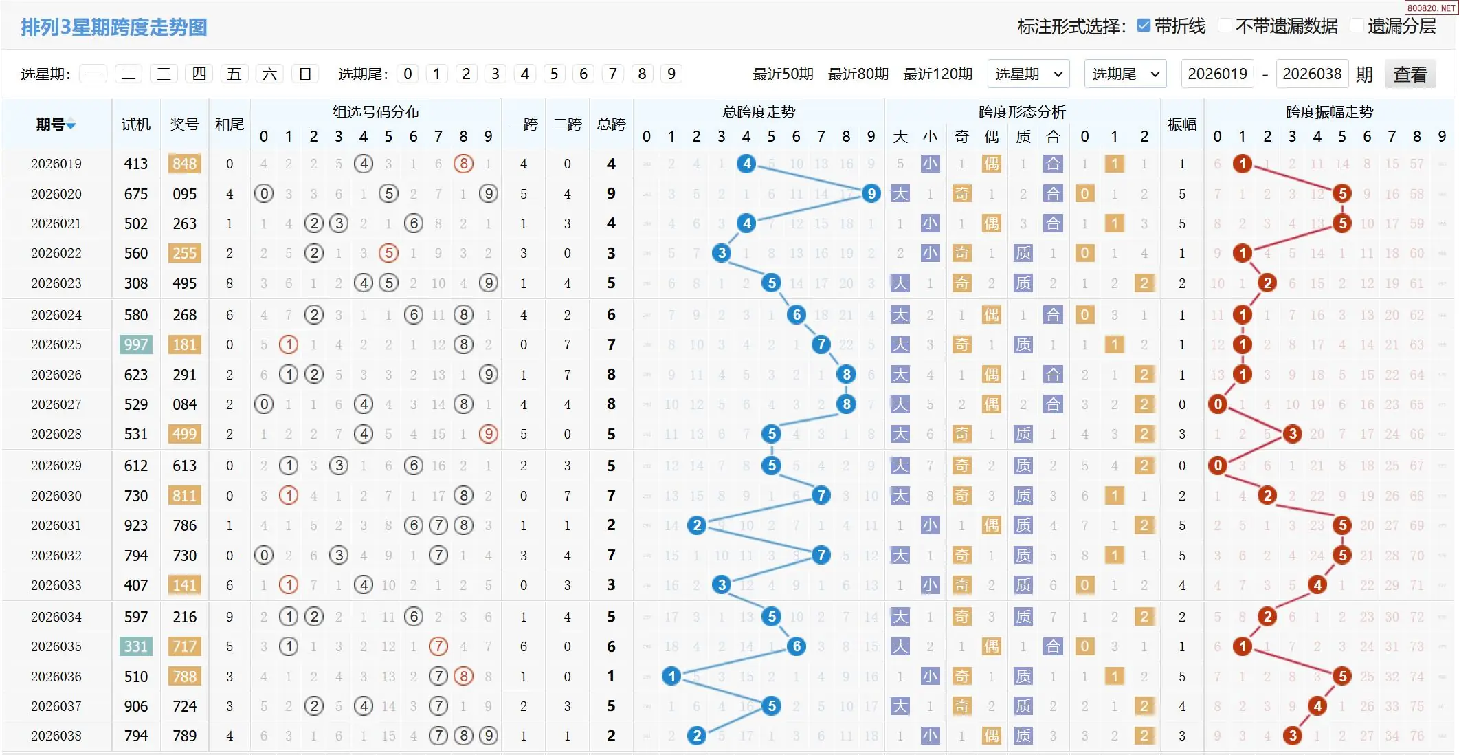 26年038期体彩P3试机号:794
