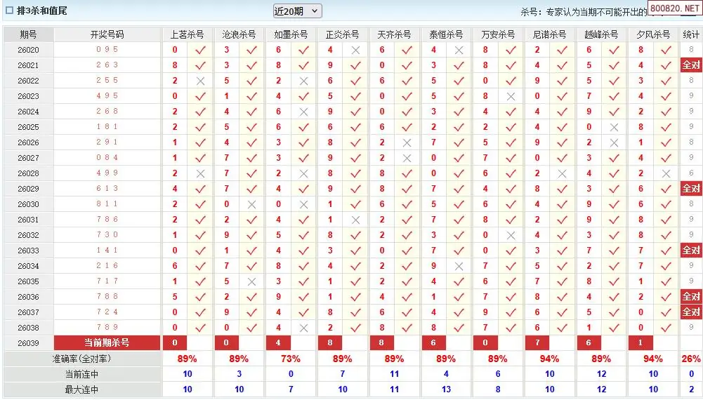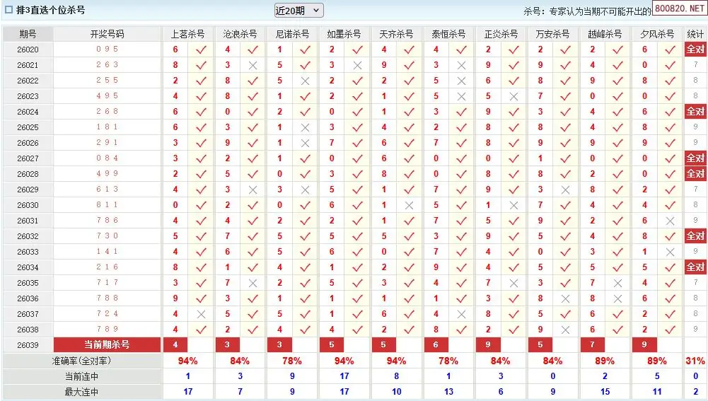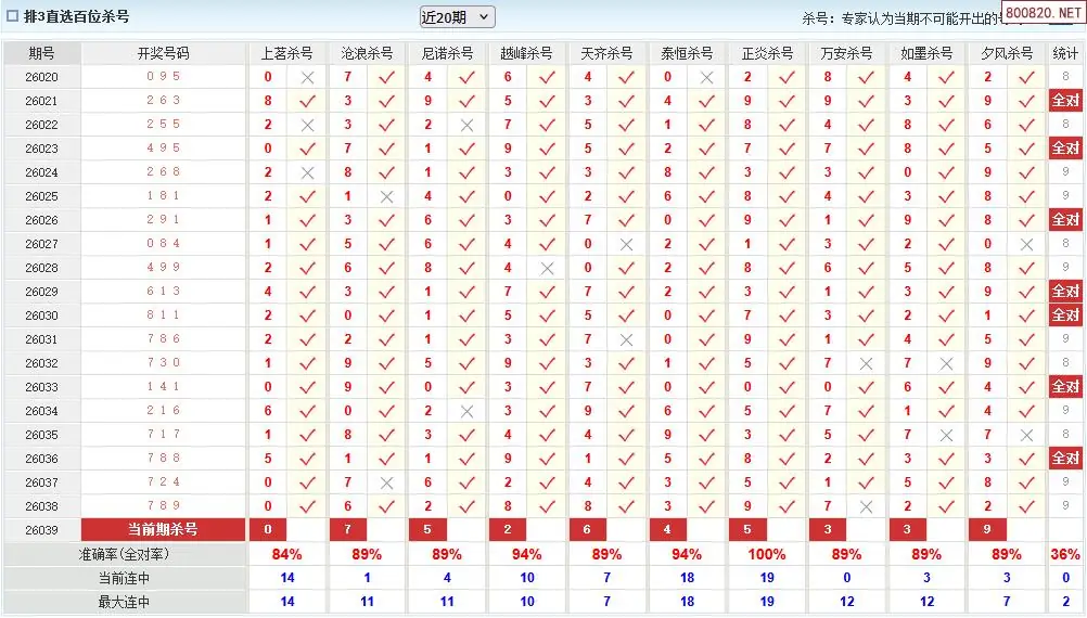 澳客彩票26年体彩P3039期十大大专家杀号